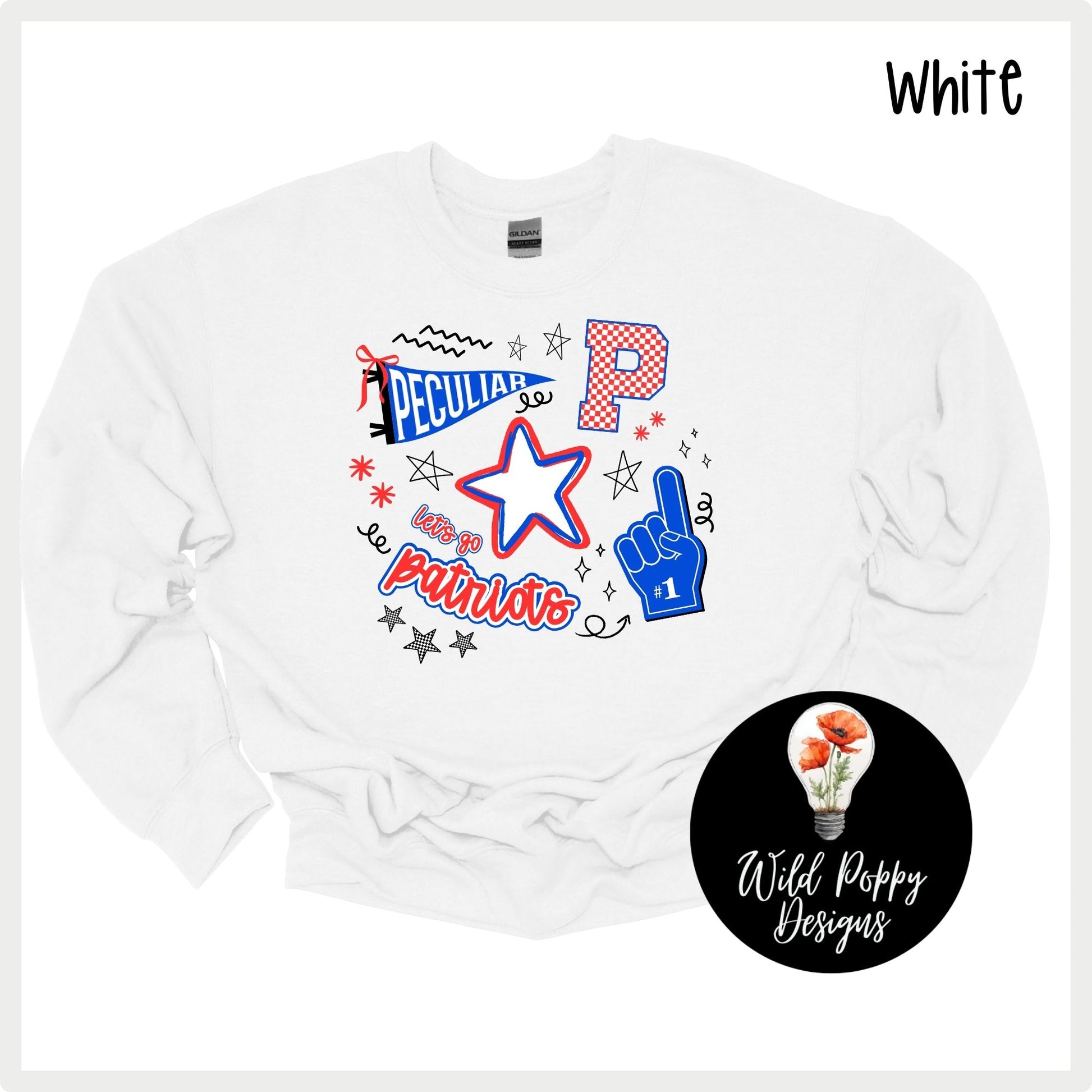 Patriots - Pennant + P + Doodles Tee or Crewneck Sweatshirt